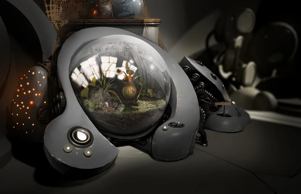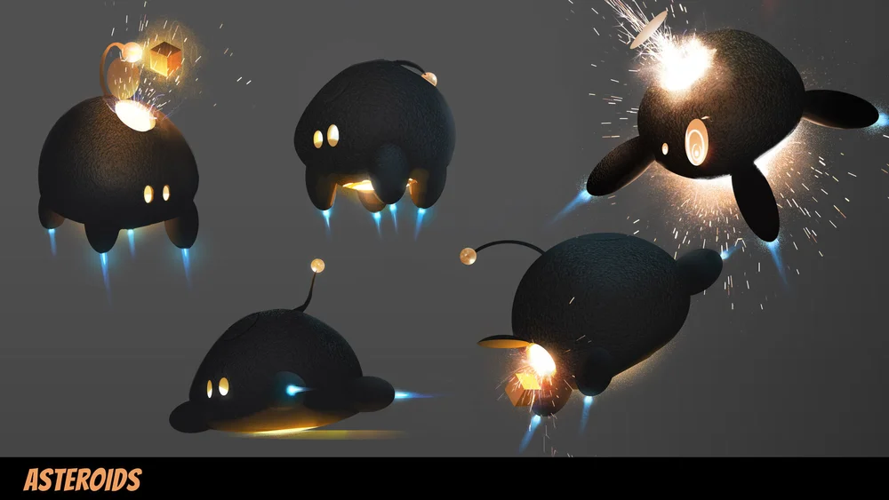 We upped the ante in ASTEROIDS! not just by embodying you as a robotic helper aboard the spaceship of alien duo Mac & Cheez, but by designing the experience where you can help guide the emotional outcome. When you first look down, you discover you are a floating, spherical bot in the ship’s charging station. Your robotic hands light up to charge different buttons on the ship, port you around the command bay with lightning speed, and most crucially, allow you to help save the ship and crew.
